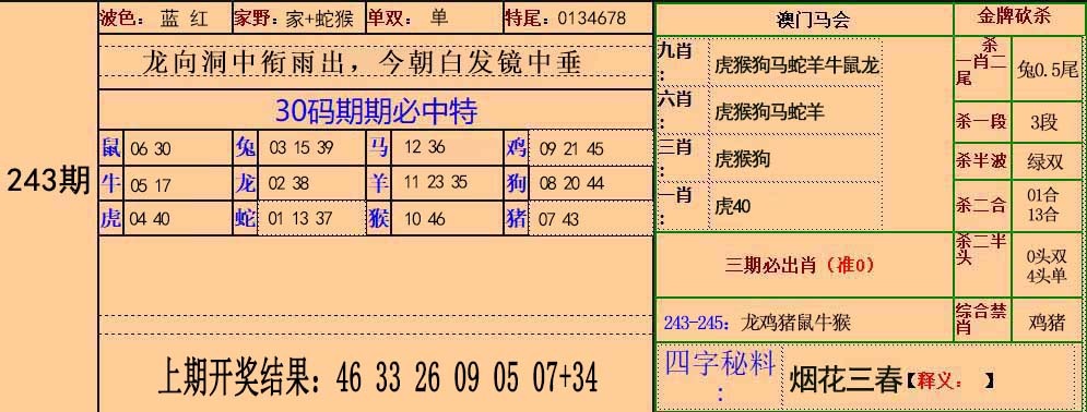 243期30碼中特圖